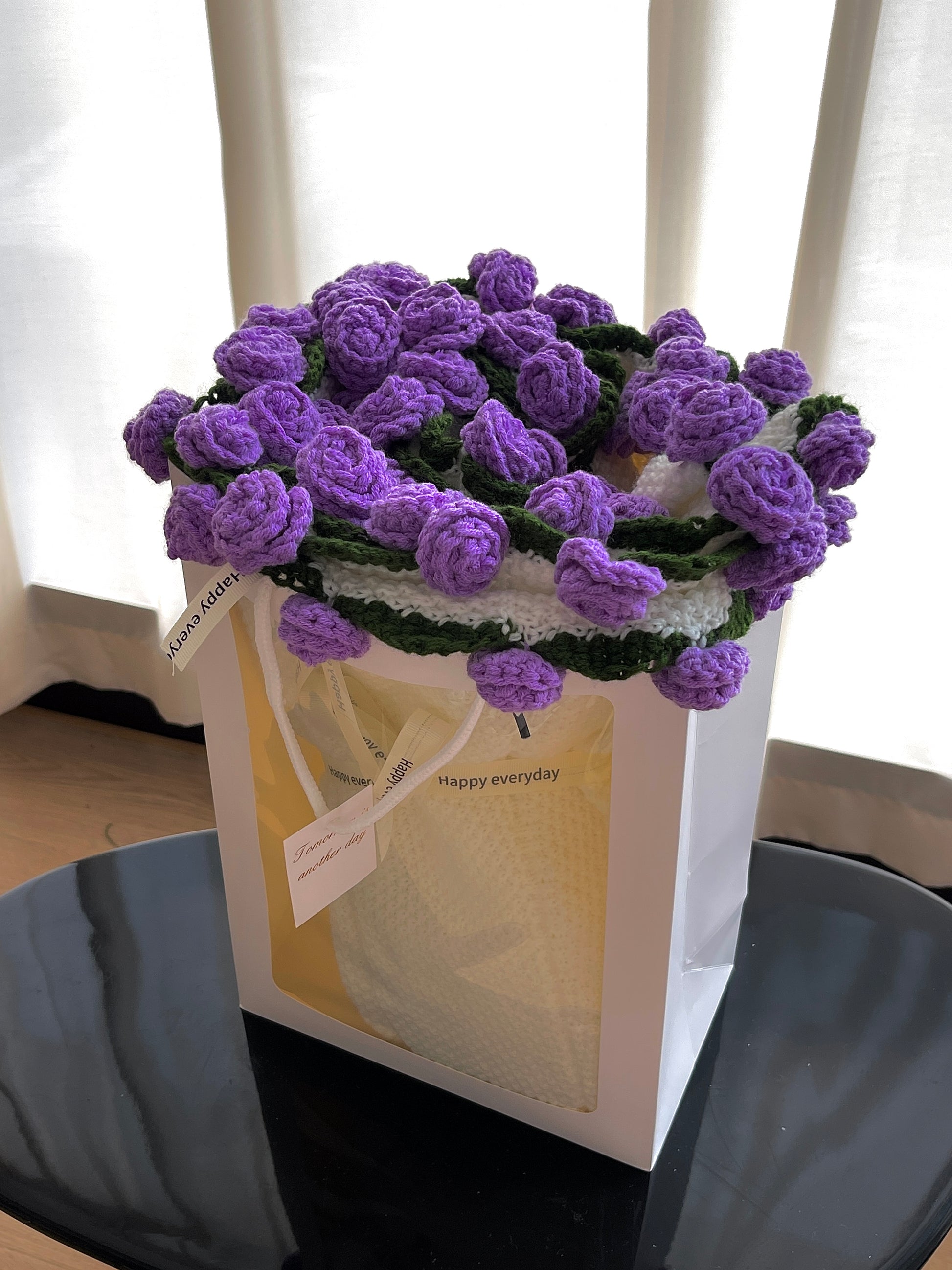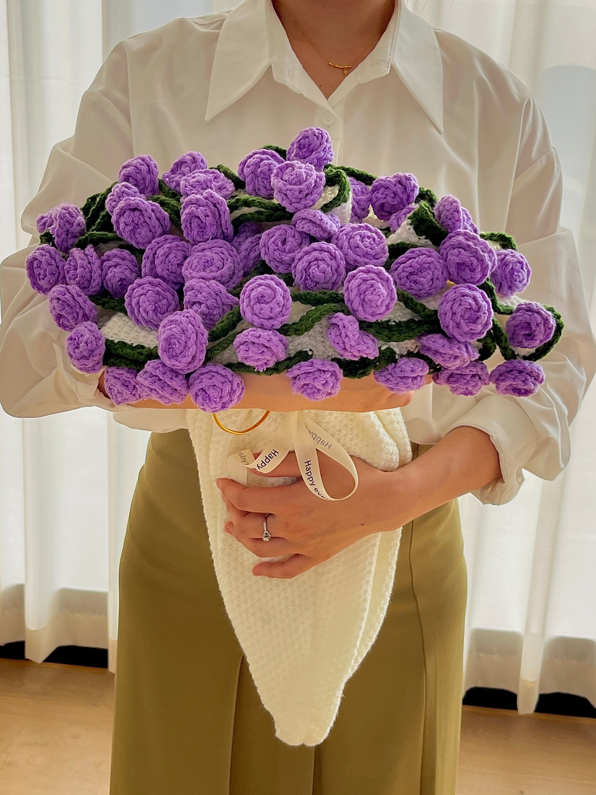 It is a well-made blanket, soft and skin-friendly, non-irritating, light and breathable, and can be used all year round. It can also be used as a shawl, sofa blanket, round table cloth, etc. When you fold them from the center, they will become a knitted bouquet. Like this design that combines romance, creativity,and practicality, who doesn’t like such a gift?