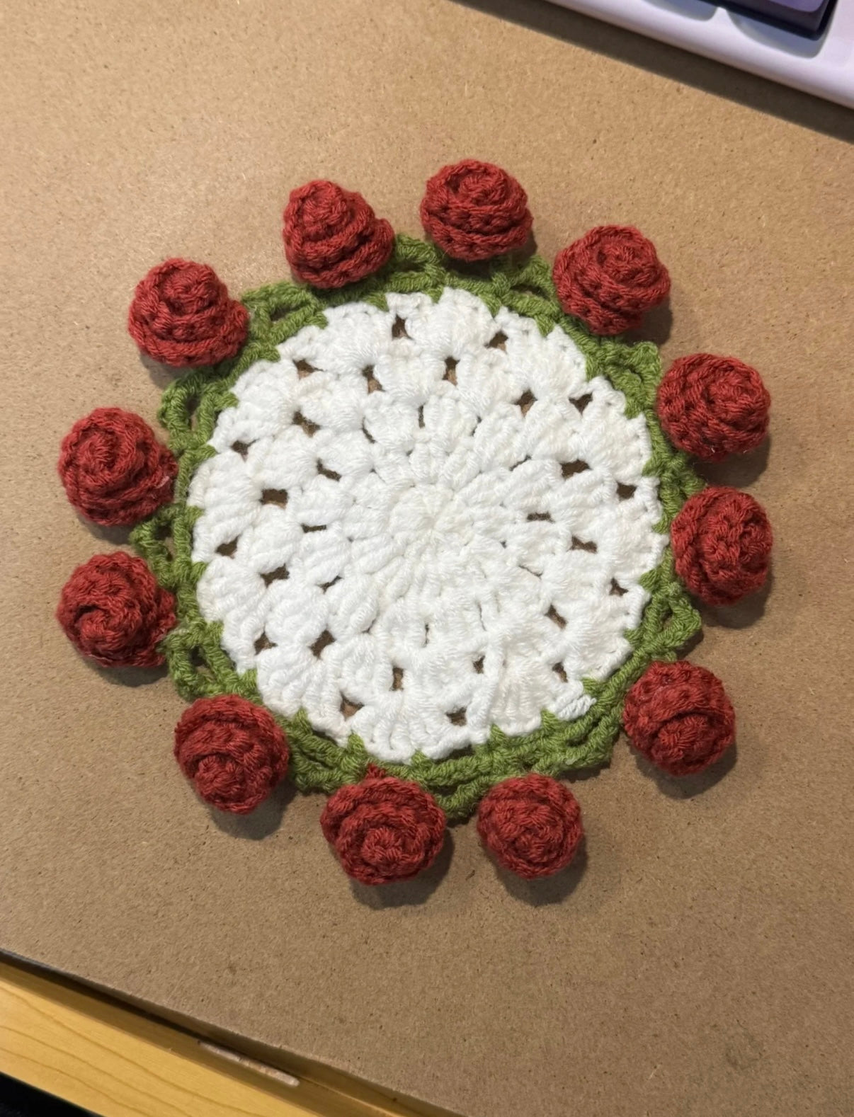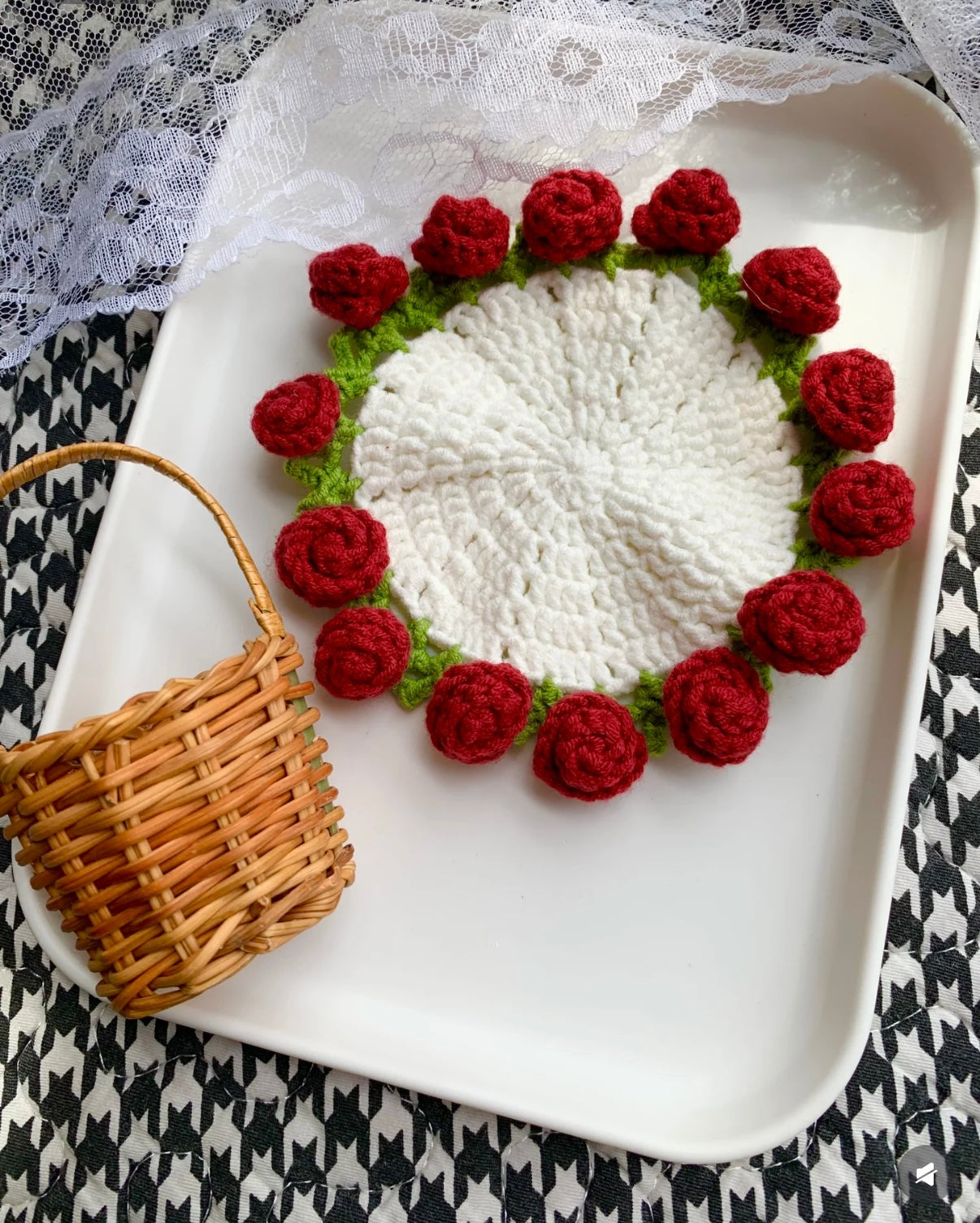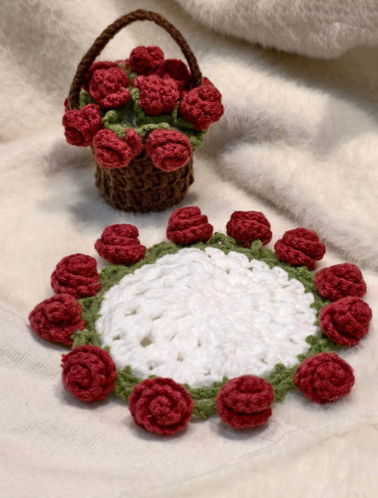 Artisanal Crochet Rose Coaster – Dual-Purpose Elegance