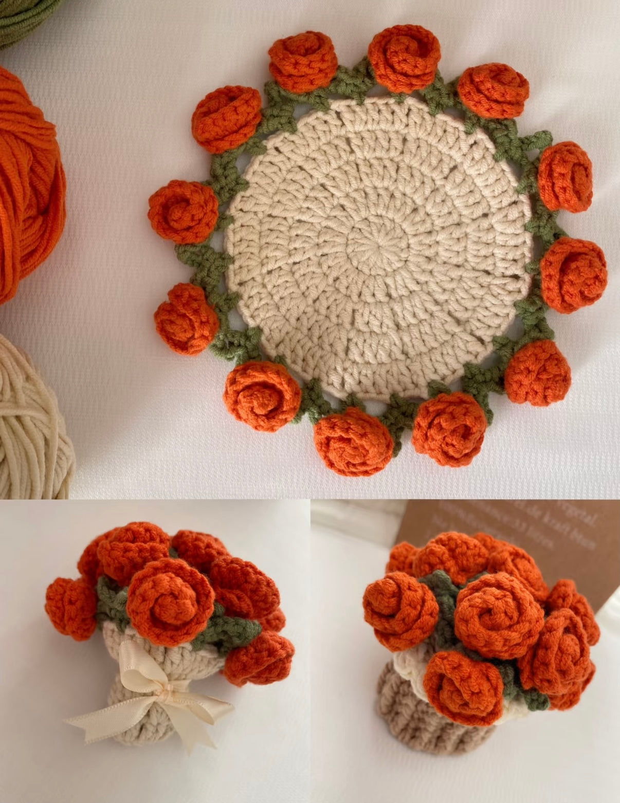 A masterpiece of craftsmanship, this handmade crochet rose coaster effortlessly blooms into a charming bouquet pot, blending practicality with artful decor1. Each delicate petal is intricately stitched to create a lifelike floral design that never wilts, bringing everlasting beauty to your home.