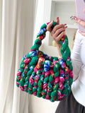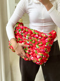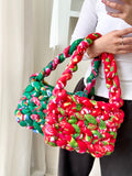 Handmade Velvet Chunky Knit Bag Two Tone(Northeast China Big Flower)